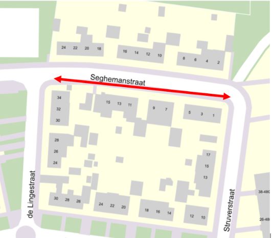 De wegbreedte van de rijbaan van de Seghemanstraat is niet optimaal tussen huisnummer 1 en 24 om aan beide zijden van de rijbaan te parkeren. Er geldt geen parkeerverbod en de parkeerdruk is hoog. Om de doorgang te kunnen blijven garanderen is het gewenst om hinkend te gaan parkeren, dit wordt op dit moment ook al deels gedoogd. De ruimte die overblijft op het trottoir is voldoende om op een goede manier gebruik te kunnen blijven maken hiervan, ook met hulpmiddelen.