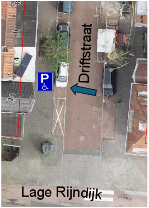 Het college van burgemeester en wethouders van de gemeente Leiden nemen een verkeersbesluit voor het aanwijzen van een gereserveerde gehandicaptenparkeerplaats. Onlangs is een aanvraag ingediend om ter hoogte van de Driftstraat nabij huisnummer 4 in Leiden een gereserveerde gehandicaptenparkeerplaats aan te leggen. Om ervoor te zorgen dat de parkeerplaats alleen gebruikt kan worden door de begunstigde, is gemeente voornemens om bebording te plaatsen die aangeeft dat de nabijgelegen parkeerplaats alleen gebruikt mag worden voor het parkeren van het voertuig met het op het onderbord vermelde kenteken.