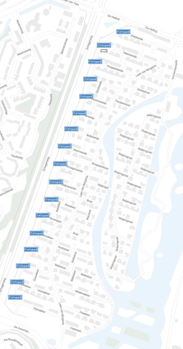 Aan de westzijde van deze woonwijk ligt een vrijliggend pad. Dit pad wordt gebruikt als een recreatieve route waarlangs een speelvoorziening is gelegen. Hierdoor zijn er veel oversteekbewegingen vanuit de wijk over het pad naar de speelvoorziening.