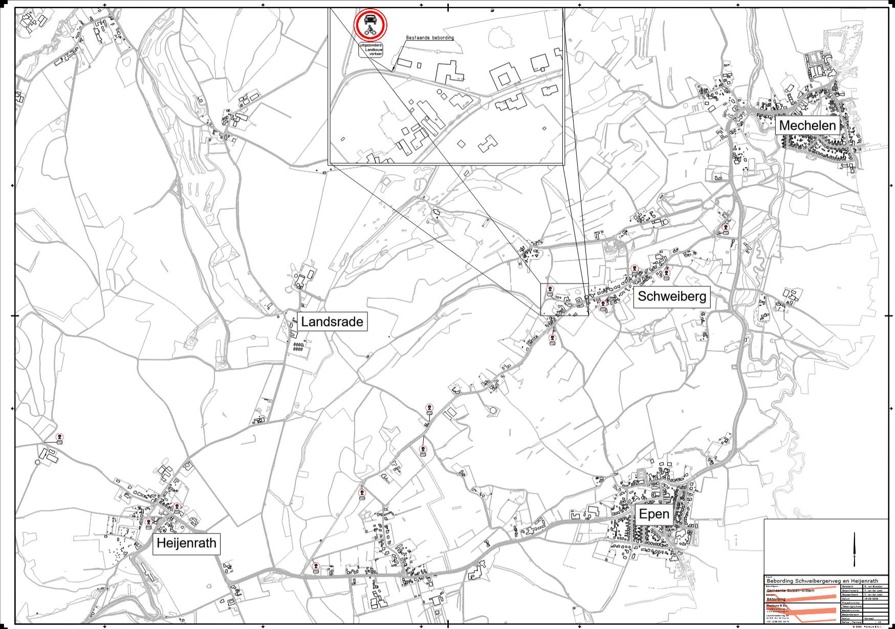 In aanvulling op het genoemde verkeerbesluit is onderstaande kaart opgesteld, die de bebording nabij de Schweibergerweg weergeeft en specifiek aanduidt dat het verbod voor gemotoriseerd verkeer niet geldt voor de Schweibergerweg, evenals Vouwere.