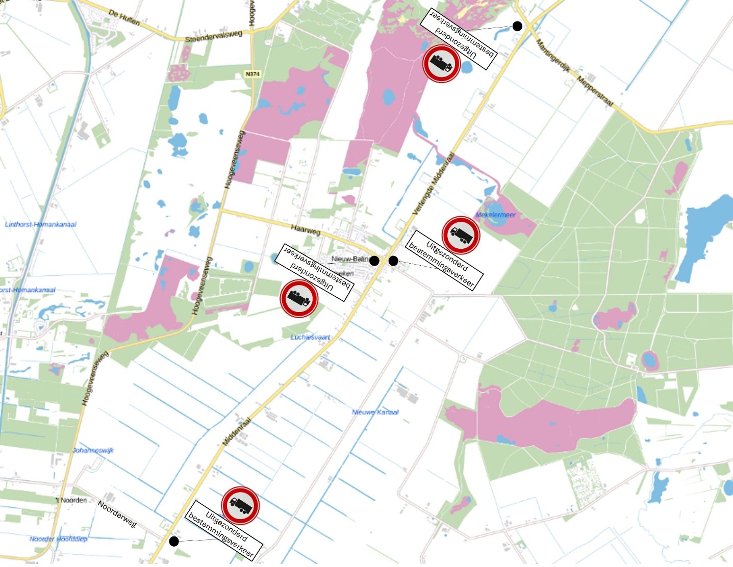 Tijdelijk een geslotenverklaring voor vrachtauto’s in te stellen gedurende de werkzaamheden aan de N374, ter hoogte van Nieuw-Balinge, op de Middenraai en Verlengde Middenraai voor zover gelegen tussen de gemeentegrens ter hoogte van de Noorderweg en Mantingerdijk.
