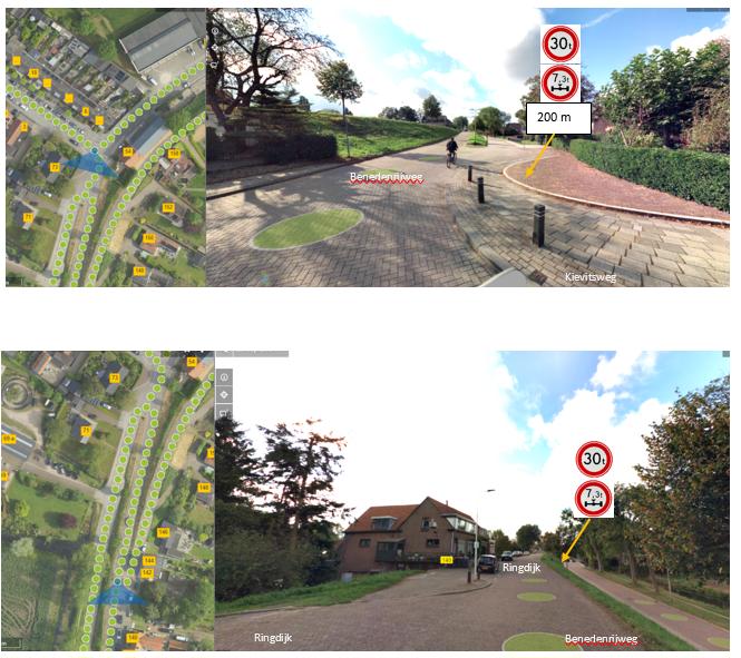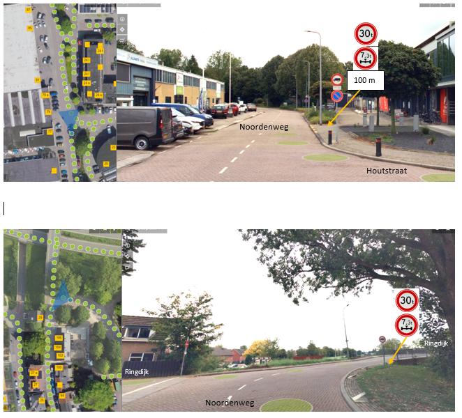 ter hoogte van de Noordenweg - Houtstraat (op 200 m) en de Benedenrijweg – Kievitsweg (op 100 m) voorwaarschuwingsborden te plaatsen;