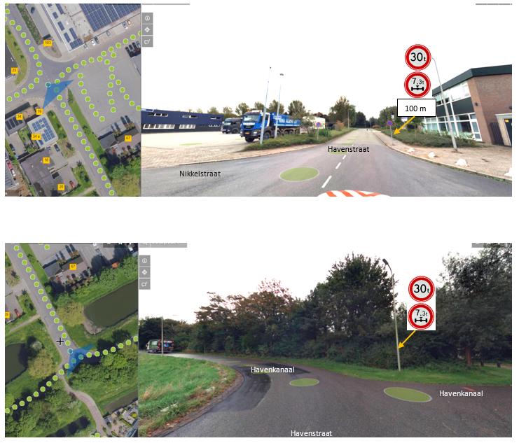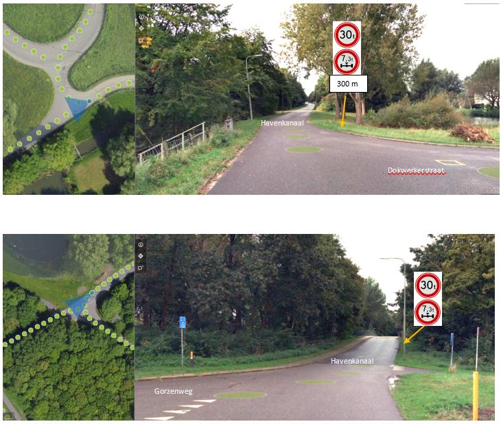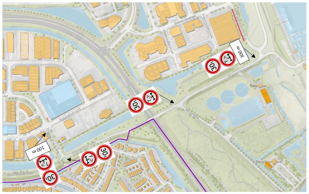 ter hoogte van het Havenstraat– Nikkelstraat (op 100 m) en het Havenkanaal – Dokwerkerstraat (op 300 m) voorwaarschuwingsborden te plaatsen;