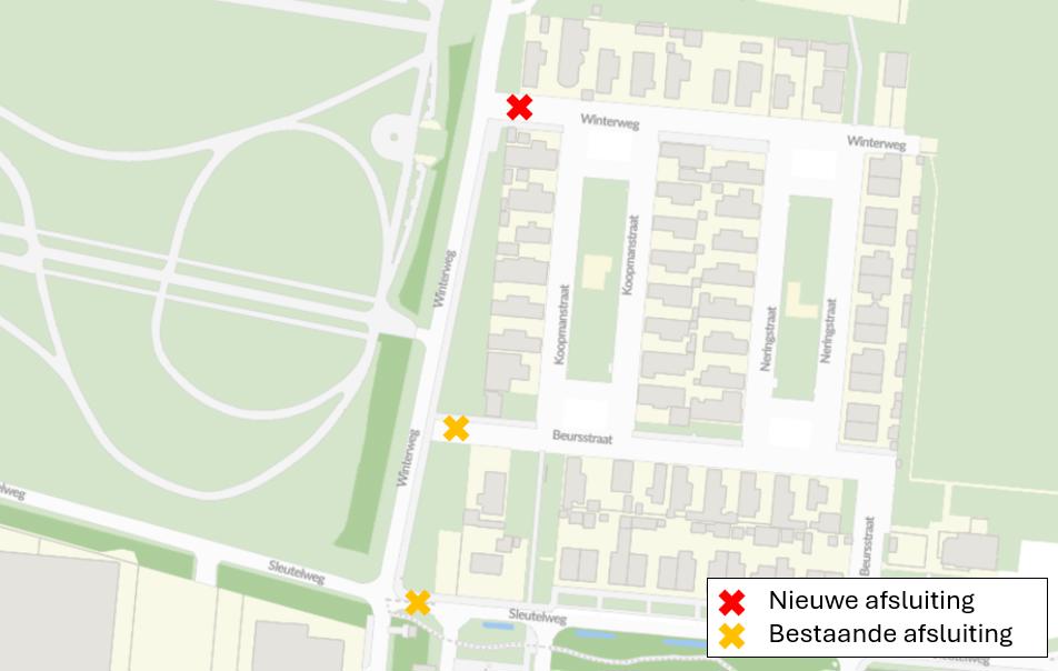 dat de fysieke afsluiting zo geplaatst wordt dat bestuurders van kleine voertuigen zoals fietsers en voetgangers nog gebruik kunnen maken van de Winterweg als doorgaande verbinding;