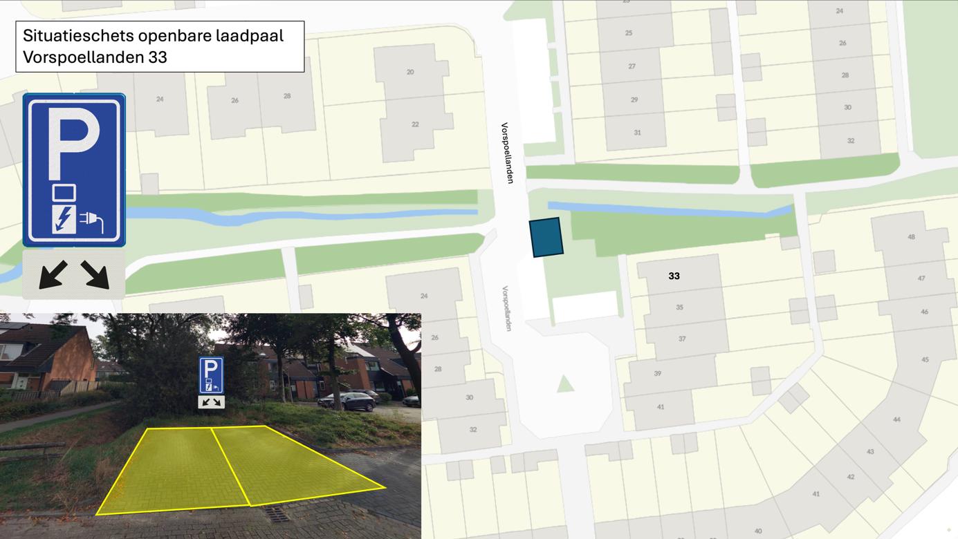 dat op basis van de hiervoor genoemde beleidsregel en de plankaart laadinfrastructuur een geschikte locatie is gevonden voor een laadvoorziening op de Vorspoellanden ter hoogte van huisnummer 33;