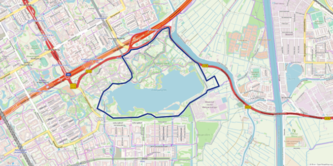 de omschrijving van de grenzen is als volgt: Vanaf de kruising Provincialeweg (N236) en de Driemondweg, langs de Driemondweg (inclusief het evenementenparkeerterrein ter hoogte van het Gaasperplaspad) tot aan het Meibergpad. Naar rechts het Meiburgpad volgend tot aan Gaasperpark. Naar links Gaaserpark volgend tot aan Langbroekdreef. Naar rechts langs de Langbroekdreef naar de Loosdrechtdreef. Naar rechts langs de Loosdrechtdreef naar de Provincialeweg N236. Naar rechts over de Provincialeweg naar het kruispunt met de Driemondweg.
