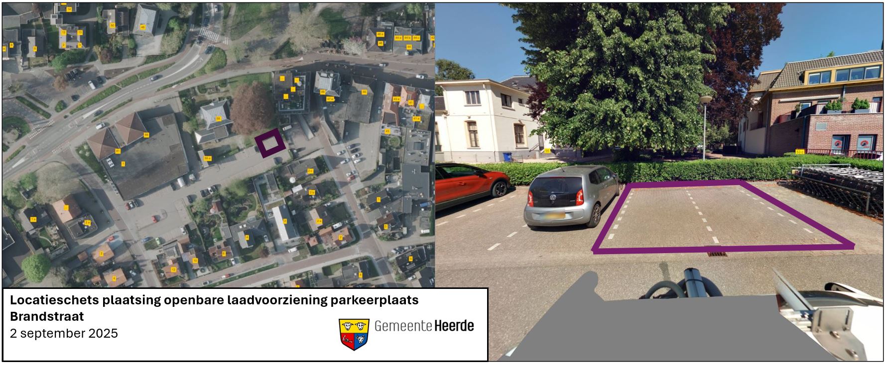 Locatieschets plaatsing openbare laadvoorziening parkeerplaats Brandstraat: