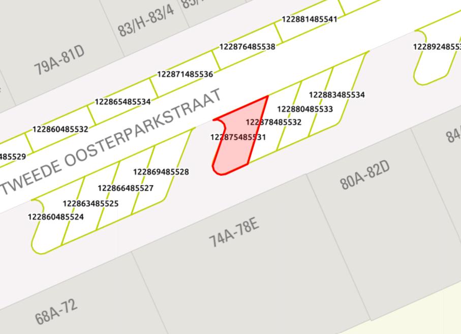 ter hoogte van perceel Tweede Oosterparkstraat 74 een gehandicaptenparkeerplaats op kenteken is gelegen;