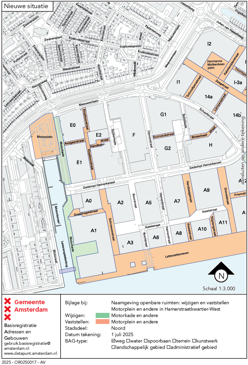 Vaststellen van meerdere openbare ruimten in het Hamerkwartier in stadsdeel Noord te Amsterdam
