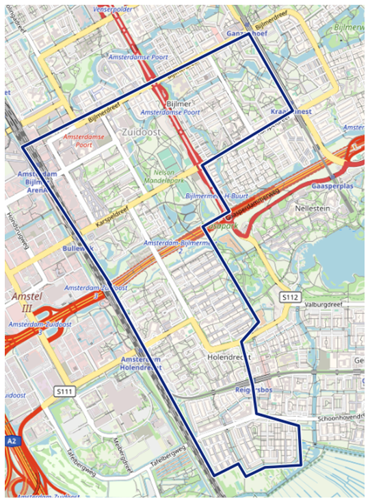 aan te wijzen als veiligheidsrisicogebied als bedoeld in artikel 2.6 van de Algemene Plaatselijke Verordening Amsterdam een deel van Holendrecht, via de H-buurt naar een deel van de K-buurt en richting een deel van Bijlmer Arena, inclusief de wegen en daaraan gelegen voor publiek openstaande gebouwen en daarbij behorende erven, zoals gemarkeerd op de plattegrond in de bijlage.