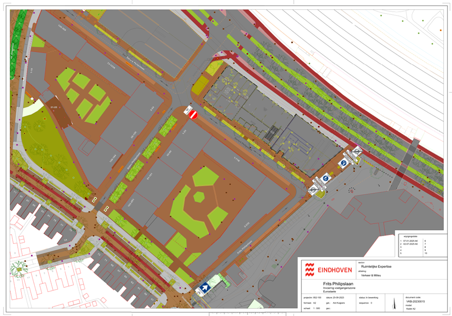 Ten behoeve van het creëren van een aangenaam verblijfsklimaat ten oosten van het appartementencomplex, nabij het PSV-stadion, bestaat de wens om het noordelijke deel van de Frits Philipslaan autoluw te maken. Er wordt een voetgangerszone ingericht, waarbinnen fietsen wordt toegestaan. Hiermee komt voor het overige verkeer de mogelijkheid te vervallen om de PSV-laan via het noordelijk deel van de Frits Philipslaan te bereiken. Dit verkeer kan gebruik te maken van de Frederiklaan en de Anton Philipslaan en/of het zuidelijk deel van de Frits Philipslaan en de Gerard Philipslaan.
