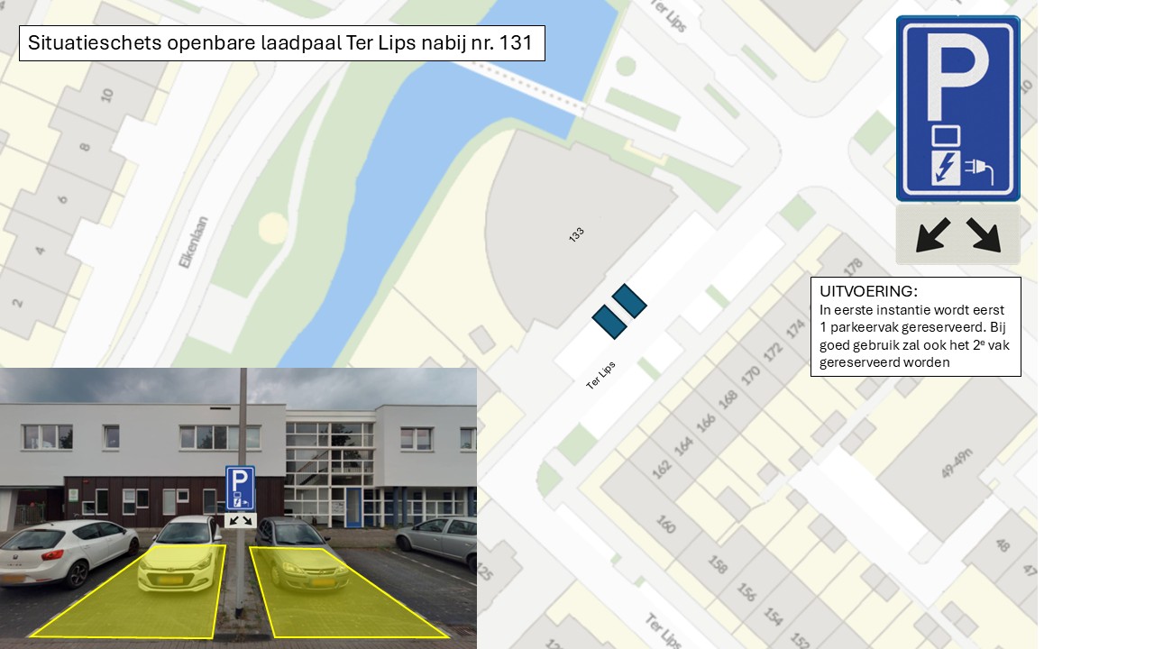 de oplaadpalen daarom zodanig geplaatst worden dat in de toekomst (bij vraag naar een tweede oplaadpunt) het tweede vak eenvoudig gereserveerd kan worden;