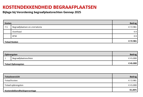 Tarieventabel behorende bij de Verordening begraafplaatsrechten gemeente Gennep (belastingjaar 2025)