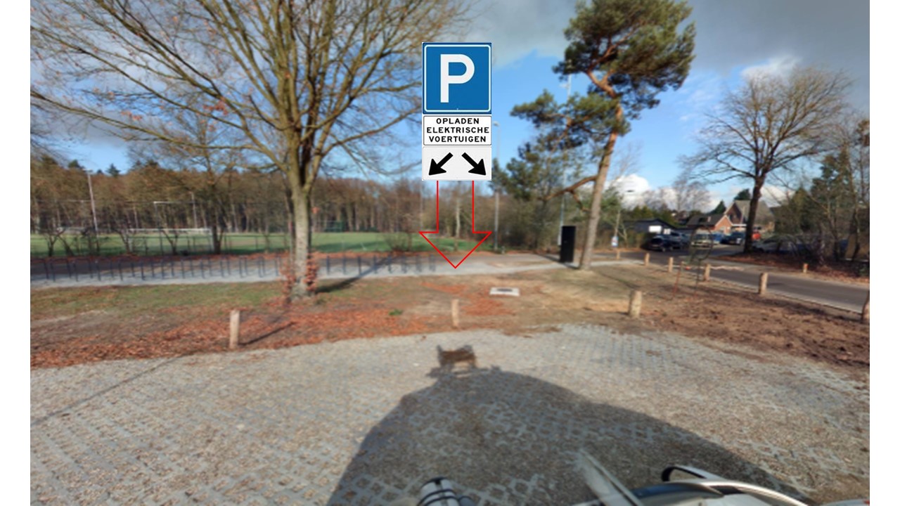 dat deze maatregel gerealiseerd kan worden door het plaatsen van verkeersbord E4 van bijlage 1 van het RVV 1990 inclusief onderbord met de tekst ‘opladen elektrische voertuigen’ en onderbord OB504 ‘twee pijlen’, bij de parkeerplaatsen ter hoogte van Veldkantweg 10A;