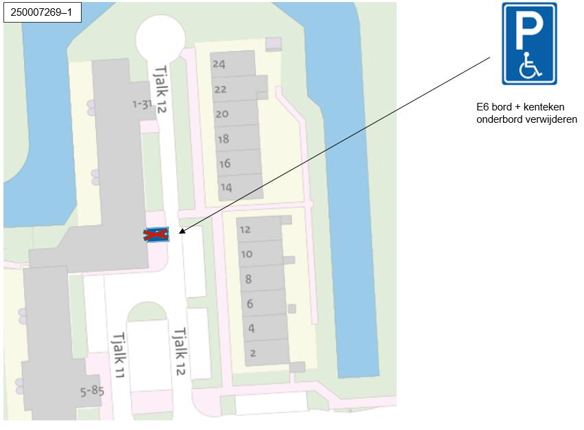 Opheffen op kenteken gereserveerde gehandicaptenparkeerplaats locatie Tjalk 12 te Lelystad door het verwijderen van het bord E6 (gehandicaptenparkeerplaats) van bijlage 1 van het Reglement verkeersregels en verkeerstekens 1990 en het verwijderen van het kentekenonderbord.