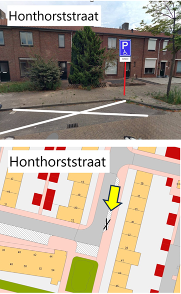 Een belanghebbende in bovengenoemde straten heeft een aanvraag ingediend voor een gehandicaptenparkeerplaats. De belanghebbende voldoet aan de voorwaarden om voor een gehandicaptenparkeerplaats in aanmerking te komen. In de huidige situatie komt het voor dat de auto van belanghebbende niet binnen een beperkte afstand geparkeerd kan worden. Hierdoor wordt hij in zijn functioneren beperkt.
