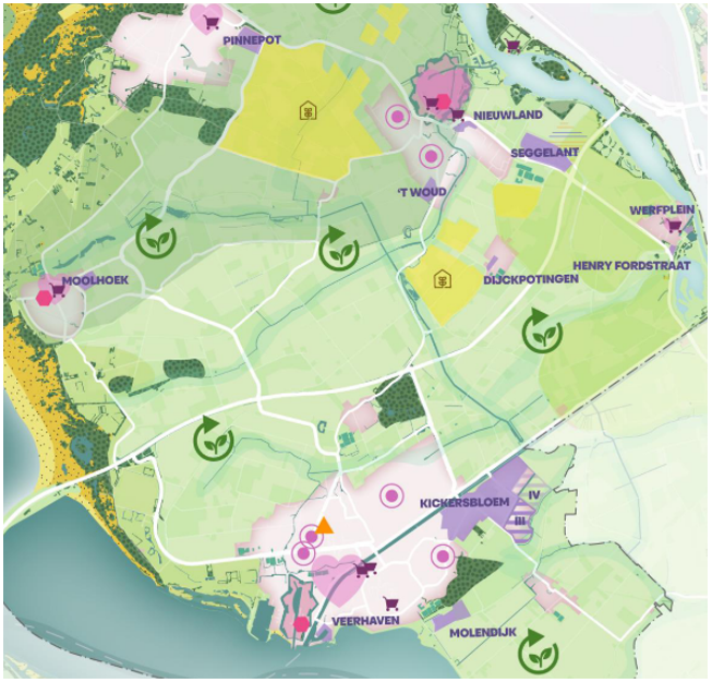 Voldoende ruimte voor werk is cruciaal voor de economische ontwikkeling van Voorne aan Zee. Onderstaande afbeelding geeft een overzicht van de werklocaties. Op Kickersbloem 3 is de afgelopen jaren 66 hectare aan ruimte voor bedrijven beschikbaar gesteld. De ruimte voor grootschalige ontwikkelingen wordt echter schaarser. In Voorne aan Zee hechten we waarde aan ons landschap en tegelijkertijd vragen opgaven als woningbouw en de energietransitie ook om ruimte. Dit betekent dat we selectiever moeten zijn in aan wie we ruimte willen bieden. We zoeken hierin een evenwichtige balans en houden rekening met de marktdynamiek.