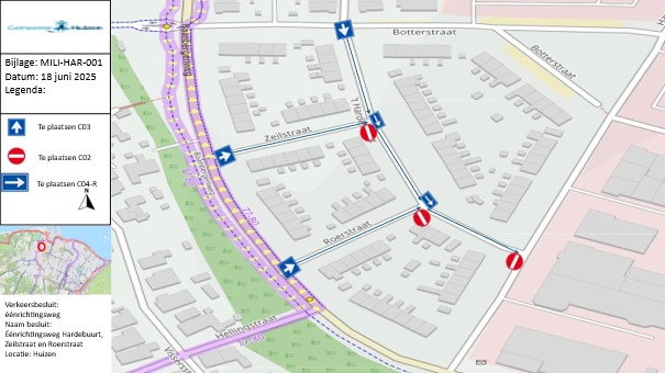Verkeersbesluit éénrichtingsweg Het hardestraat, Zeilstraat en Roerstraat te Huizen