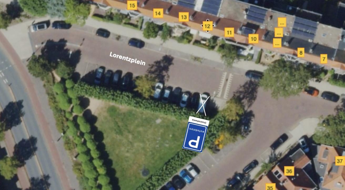 Door middel van het plaatsen van bord E8r van bijlage 1 van de RVV 1990 met op het bord de categorie “autodelen” en op het onderbord de groep “Greenwheels” een parkeerplaats gereserveerd wordt de voertuigcategorie of groep voertuigen waarvoor de parkeergelegenheid is bestemd en tevens op de aanduiding dat de parkeergelegenheid is gereserveerd voor een bepaald voertuig van Greenwheels aan het Lorentzplein nabij no. 12.