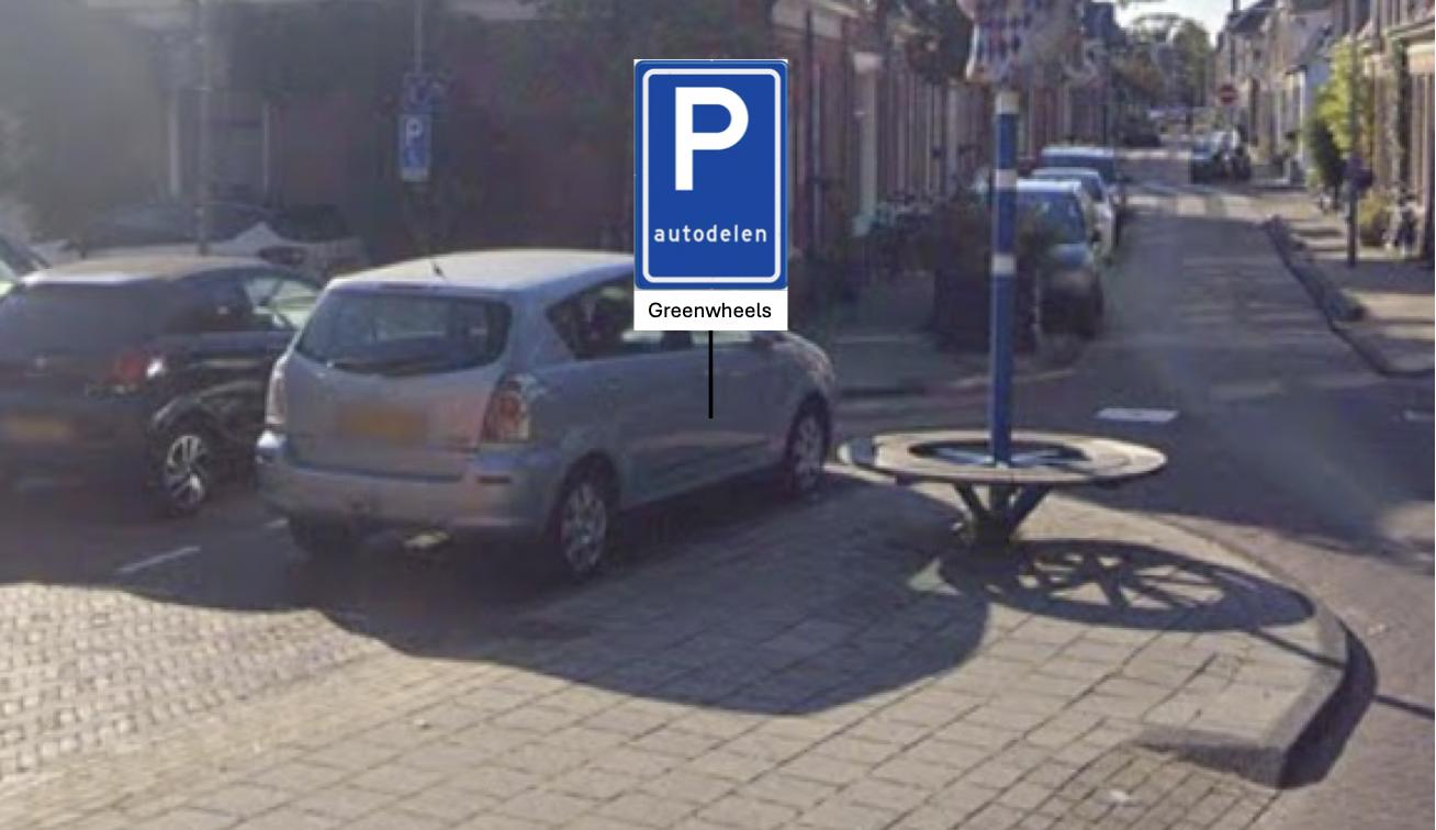 dat dit betekent dat de deelauto’s van Greenwheels die gebruik dienen te maken van deze parkeergelegenheid als zodanig duidelijk herkenbaar moeten zijn aan alle zijden;