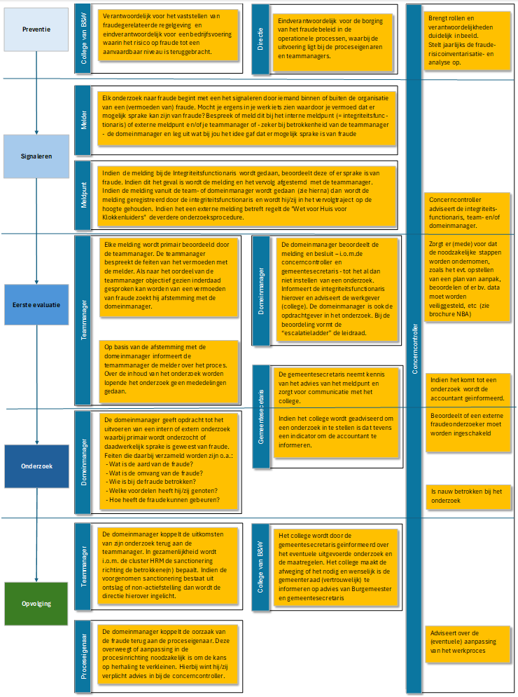 In het fraudeproces is sprake van verschillende stappen, rollen en verantwoordelijkheden. In het overzicht op de volgende pagina worden deze in beeld gebracht. Deze zijn gebaseerd op de thans bekende regelgeving bij de gemeente Montferland: