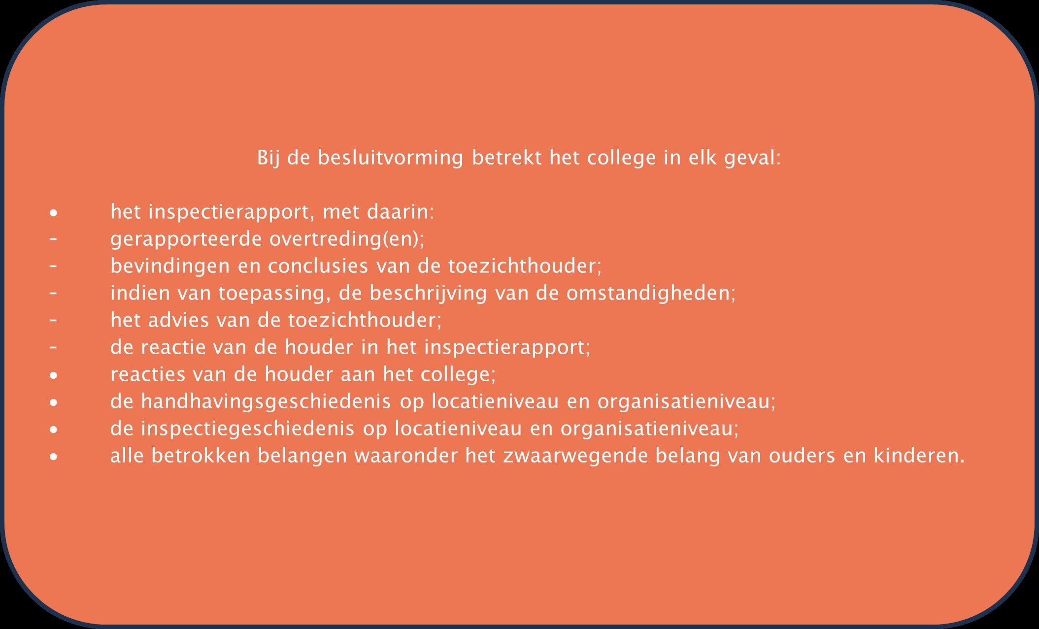 besluitvorming. Ook een reactie van de houder op een inspectierapport betrekt het college bij de beoordeling.