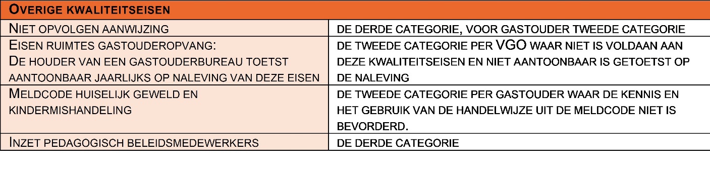 Elke overtreding beoordeeld en bestraft het college afzonderlijk ook als één kwaliteitseis meerdere keren is overtreden. Daarnaast kan het college een boete opleggen als een houder na het opleggen van een aanwijzing geen maatregelen heeft genomen om herhaling of voortduren van een overtreding te voorkomen. Zodra één kwaliteitseis meerdere keren is overtreden, beoordeelt het college of het totale boetebedrag dat kan worden opgelegd evenredig is met de ernst van de overtredingen en de mate waarin de kwaliteit van opvang negatief werd beïnvloed.