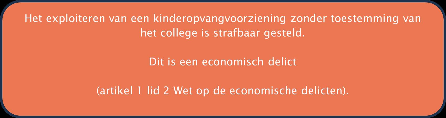 Als een kinderopvangvoorziening toch start zonder hiervoor schriftelijke toestemming te hebben gevraagd of verkregen, is sprake van niet gemelde oftewel illegale kinderopvang. Dit is een ernstige overtreding die het college niet wil. In dat geval kan het college niet zorgen voor verantwoorde en veilige opvang voor kinderen. Het college treedt hiertegen dan ook streng op. De locatie moet meteen sluiten en de houder kan een bestuurlijke boete krijgen ook kan het college aangifte doen bij het Openbaar Ministerie.