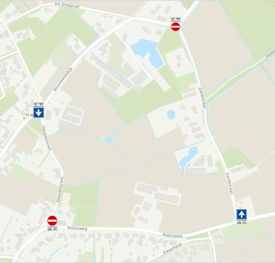 . Dat de verkeersstromen op de Zandstraat en Heuvelstraat in tegengestelde richting lopen;