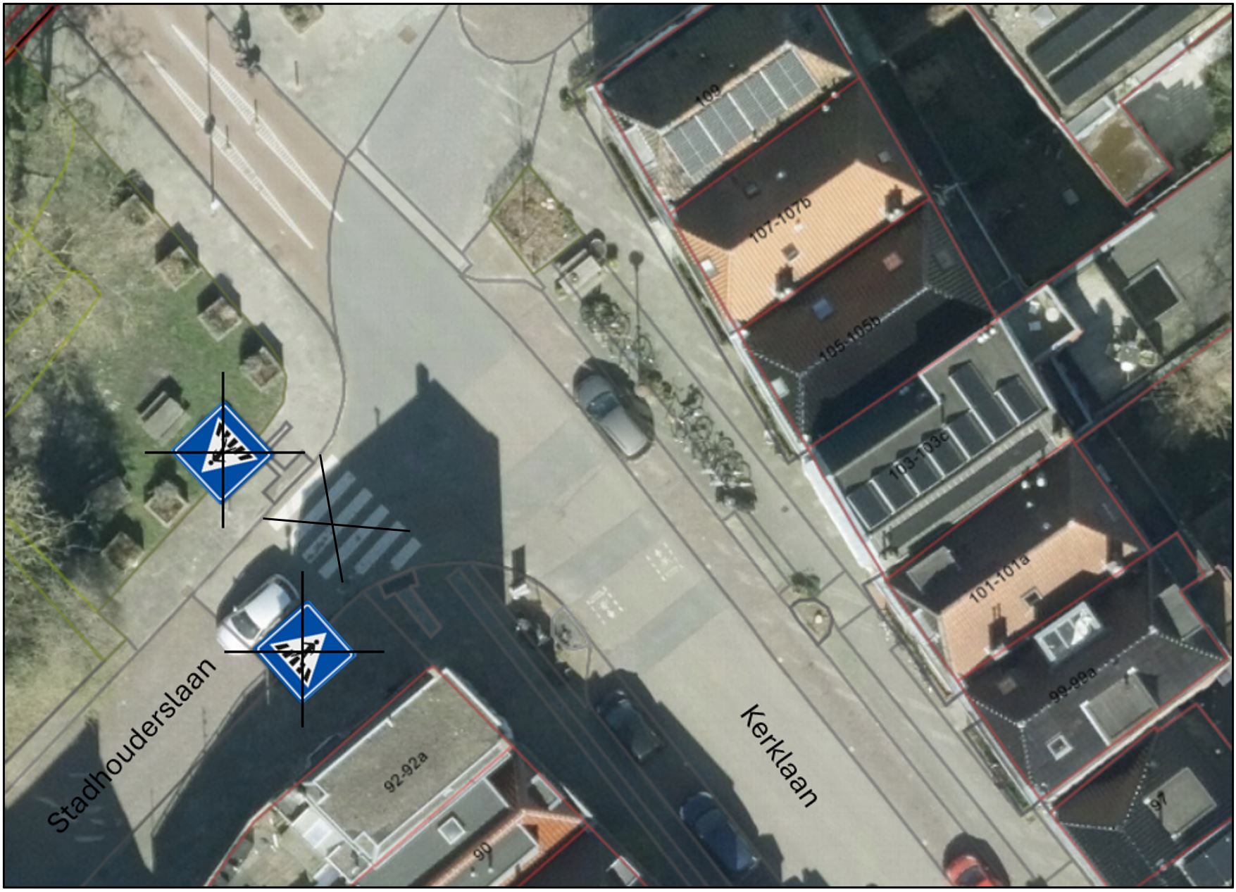 Omdat het kruispunt Kerklaan - Stadhouderslaan aangepast wordt naar een inritconstructie, is de huidige voetgangersoversteekplaats niet meer nodig. Voetgangers die een inritconstructie oversteken hebben namelijk al voorrang op al het andere verkeer. Met de komst van de inritconstructie komt de markering van de voetgangersoversteekplaats (met borden L2) te vervallen ter hoogte van Kerklaan 92.
