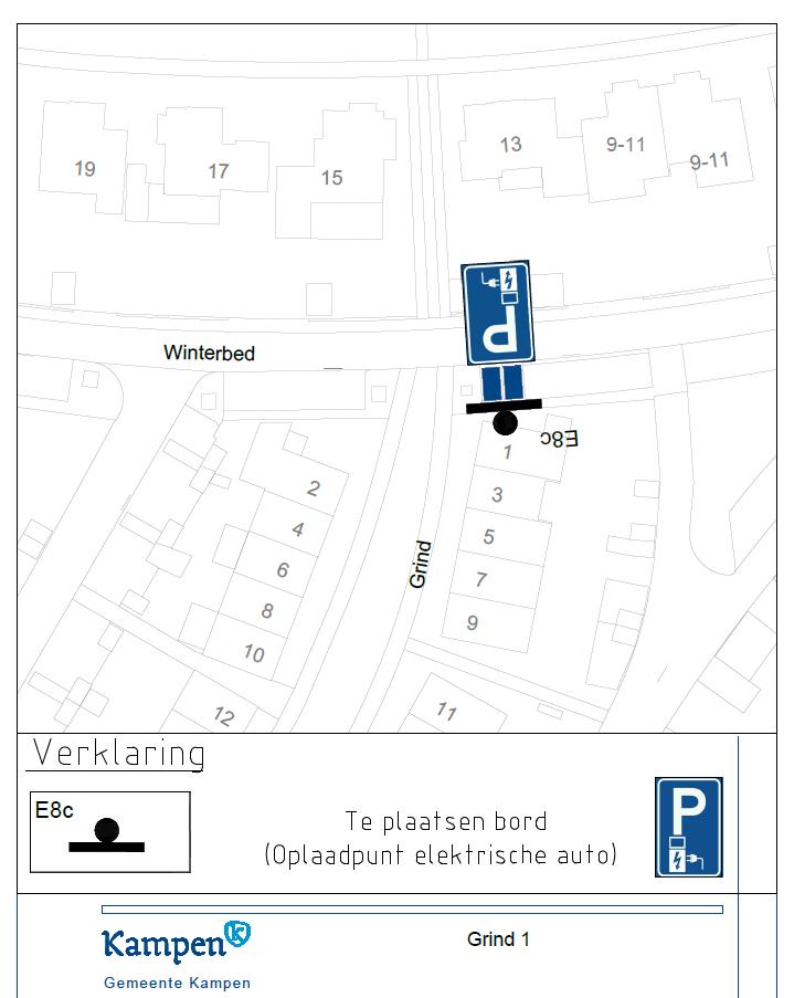 Verkeersbesluit gereserveerde parkeerplaatsen voor opladen elektrische voertuigen aan het Winterbed gelegen naast Grind 1 te Kampen