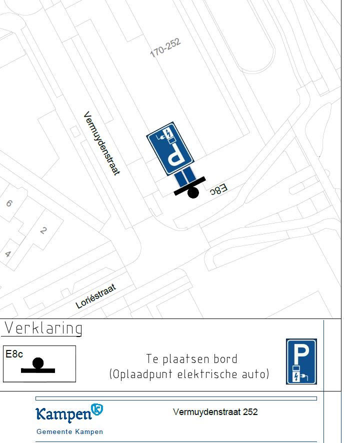 Verkeersbesluit gereserveerde parkeerplaatsen voor opladen elektrische voertuigen op het parkeerterrein aan de voorzijde van Vermuydenstraat 252 te Kampen