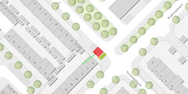 Fideliodreef (ter hoogte van zijgevel Rubicondreef huisnummer 74; wegvak tussen La Bohèmedreef en Rubicondreef)