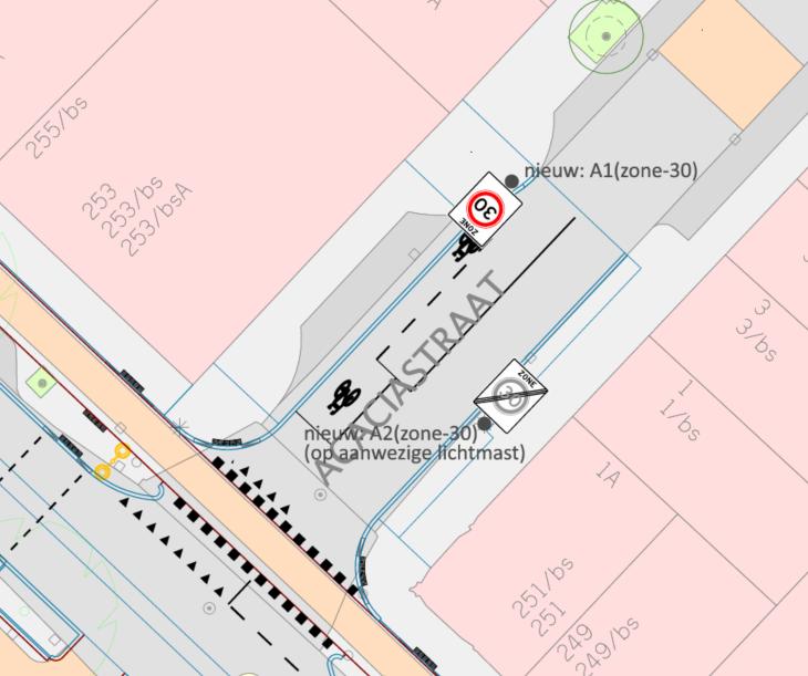 met deze maatregel de maximum snelheid wijzigt naar 30 km per uur in de Acaciastraat op het deel dat aansluit op de Amsterdamsestraatweg;