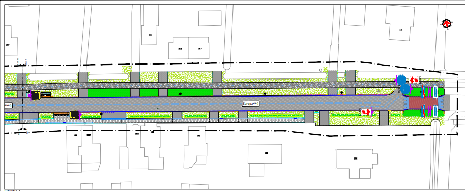 Op de Europaweg vinden rioolwerkzaamheden plaats. De werkzaamheden betreft het wegvak dat ligt binnen de bebouwde kom. Hierdoor doet zich de mogelijkheid voor om de verkeersleefbaarheid op en rondom dit wegvak te verbeteren.