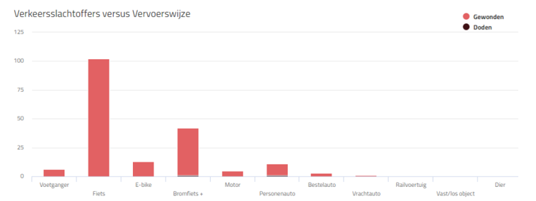 Van een aantal van deze wegen is de gemeente wegbeheerder. Op deze wegen zijn 524 ongevallen geregistreerd in de periode januari 2018 t/m december 2022. Daarvan waren er: