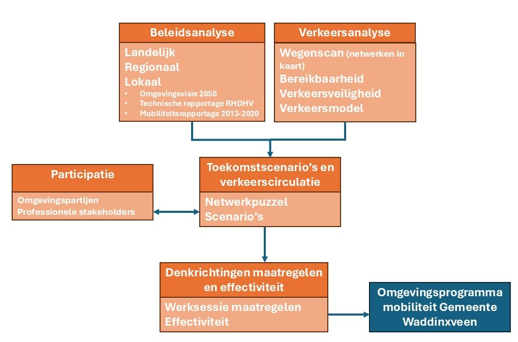Onze aanpak om tot het Omgevingsprogramma Mobiliteit en Verkeer te komen, bestaat uit een aantal gestructureerde stappen. Deze zijn weergegeven in Figuur 2.