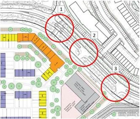 Figuur 28 Mogelijke locaties voetgangersaansluiting Park Vredenburgh