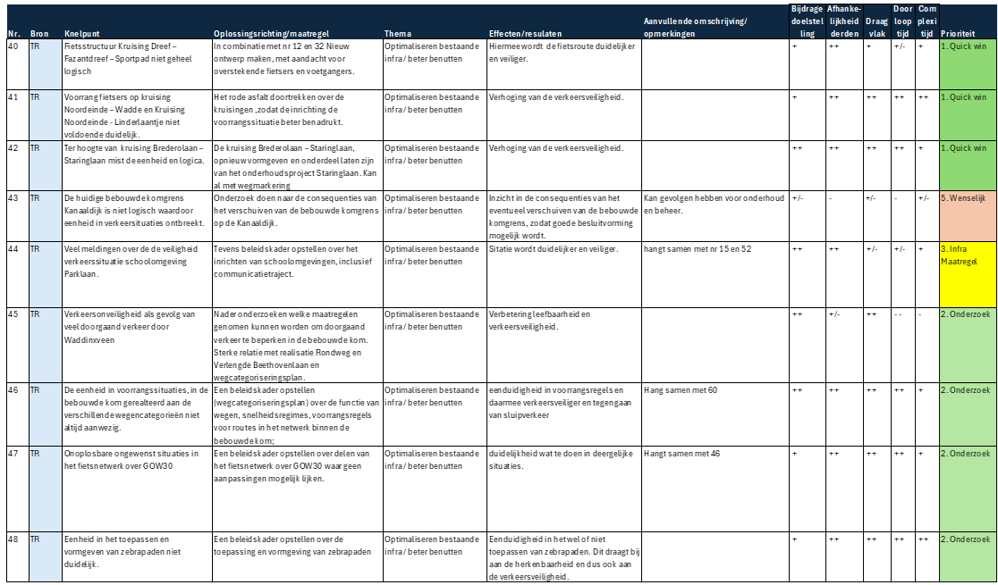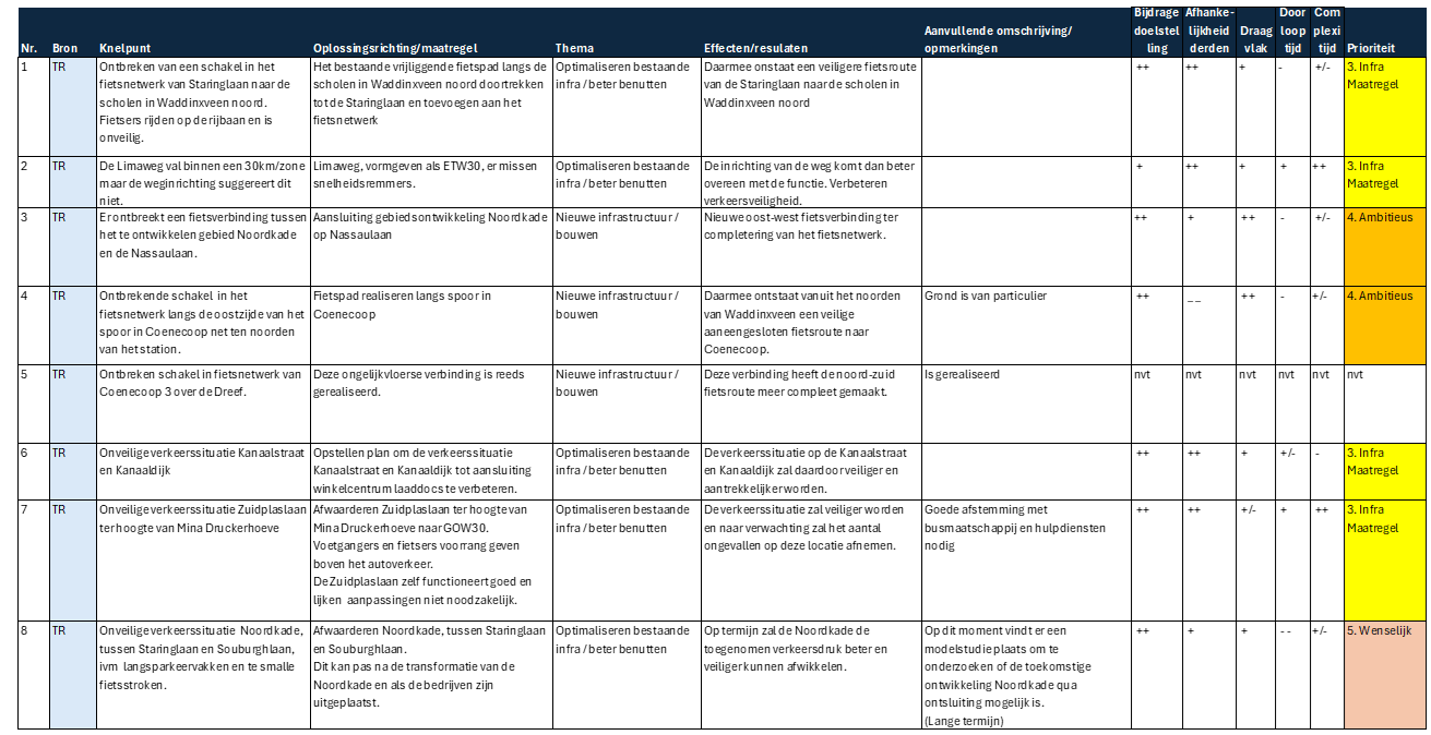 Door de criteria kwalitatief te beoordelen is er tevens een inschatting gemaakt in de kansrijkheid en prioriteit van de maatregelen.