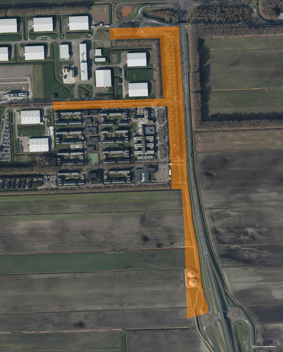 het gebied gelegen tussen de rotonde Ter Apelervenen/Nulweg en de westelijke rotonde Ter Apelervenen/A.G. Wildervanckweg, zoals in de bijlage bruinachtig gearceerd.