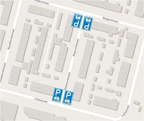 Het plaatsen van in totaal vier verkeersborden ‘Parkeergelegenheid voor het parkeren met twee wielen op het trottoir’ (bord E08b), in de Steenuilstraat te Sittard, aan twee wegzijdes, ter hoogte van de kruisingen met de Valkstraat en Reigerstraat.