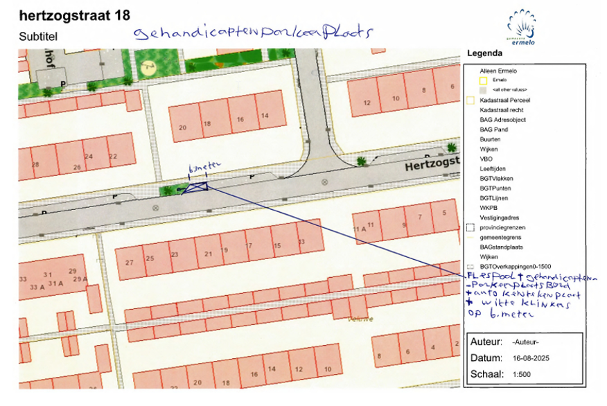 Verkeersbesluit voor het aanwijzen van een gehandicaptenparkeerplaats nabij Hertzogstraat 18 te Ermelo