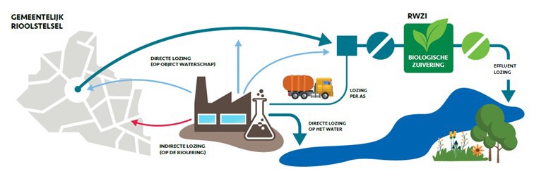 Figuur 4.2 – Uitleg directe en indirecte (bedrijfsmatige) lozingen van afvalwater