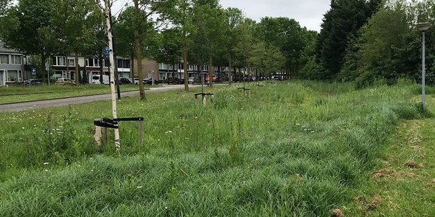 Water Afvoer Drainage en Infiltratie; een lokale, groene laagte in openbaar gebied waar regenwater tijdelijk kan worden opgevangen en infiltreren in de bodem.