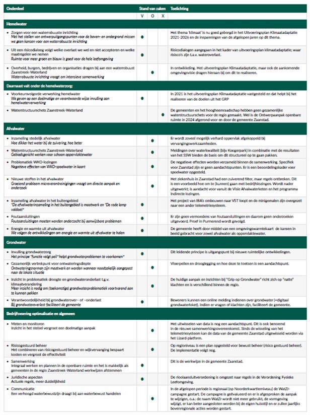 De Omgevingsvisie Zaanstad 2040 bevat de principes ‘Dóórontwikkelen van de Zaanse woonwerkstad: door mengen en verdichten’ en ‘Ruimte met groen-blauw uitnodigend en klimaat adaptief inrichten’. Die principes geven voldoende richting en visie om het facultatieve programma Riolering en Water vorm te geven, zodat we vanuit de waterketen op doelmatige en duurzame wijze bijdragen aan een gezonde en prettige leefomgeving. Het college van burgemeester en wethouders is bevoegd het programma vast te stellen.