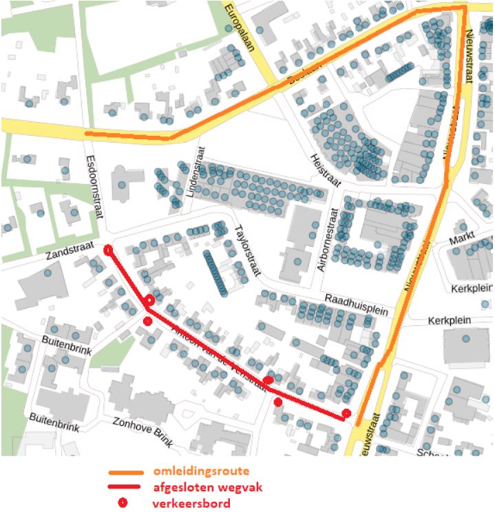 Bij werkzaamheden en evenementen in de Nieuwstraat is de Antoon van de Venstraat een noodzakelijke schakel om de verkeerscirculatie in stand te houden. Op die momenten geldt het inrijdverbod dus niet.