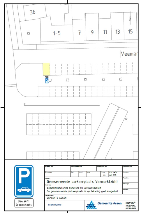 Verkeersbesluit gereserveerde parkeerplaats deelauto Veemarktzicht