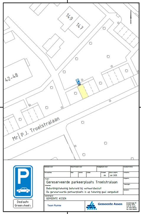 Verkeersbesluit gereserveerde parkeerplaats deelauto Troelstralaan 48