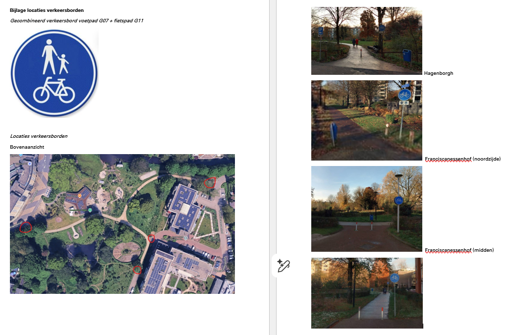 In de huidige situatie geldt in beginsel dat wanneer geen aparte voorziening voor voetgangers aanwezig is, deze het fietspad mogen gebruiken. Door het pad als gecombineerd voetgangers- en fietspad aan te wijzen, wordt de situatie voor alle gebruikers duidelijker. Dit verkleint de kans op misverstanden en ongevallen, omdat voor iedere weggebruiker helder is waar zij zich mogen begeven. Vooral in een park waar veel verschillende doelgroepen – zoals wandelaars, spelende kinderen en fietsers – gebruikmaken van dezelfde infrastructuur, is heldere markering en regelgeving van groot belang. Een gecombineerde aanduiding bevordert daarnaast de toegankelijkheid van het park voor zowel voetgangers als fietsers. Verschillende vormen van langzaam verkeer kunnen hierdoor veilig naast elkaar bestaan. Het formeel aanwijzen van het pad als gecombineerd voetgangers- en fietspad draagt bij aan de veiligheid, overzichtelijkheid, toegankelijkheid en het optimaal gebruik van het park voor alle bezoekers.Op grond van het bepaalde in artikel 15 van het Besluit Administratieve Bepalingen inzake het Wegverkeer is voldaan aan de Uitvoeringsvoorschriften BABW inzake verkeerstekens gestelde voorschriften.