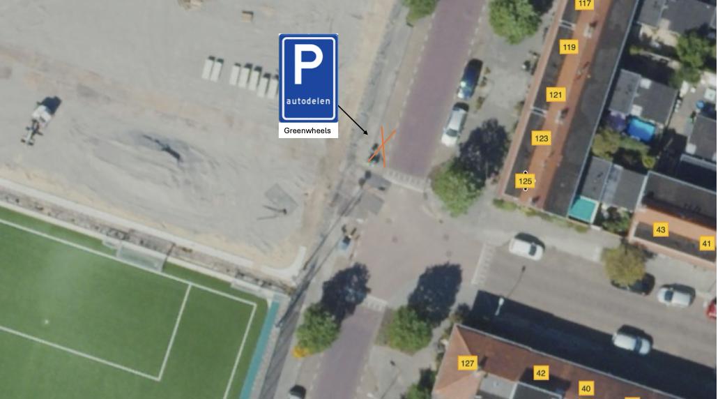 dat in overeenstemming tussen Greenwheels en de gemeente Haarlem de parkeergelegenheid aan de Van Oosten de Bruijnstraat nabij no. 125, ter hoogte van de kruising met de Adriaan de Jongestraat, geschikt is bevonden;